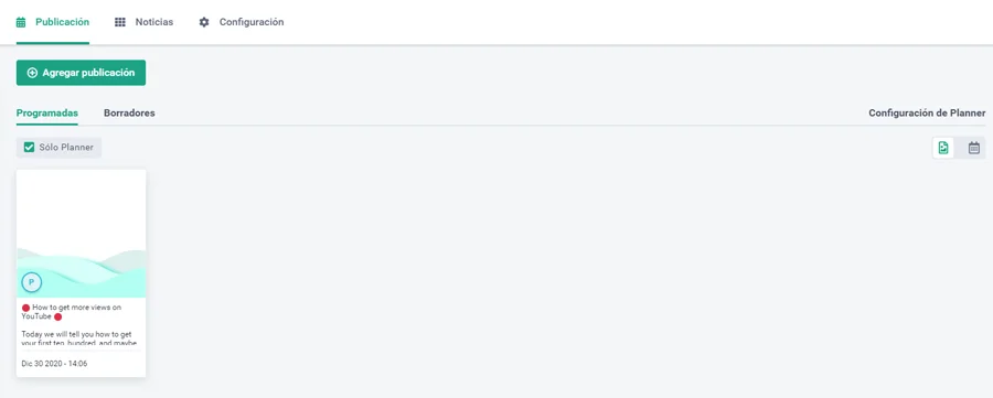 - Seleccione Planner en la barra inferior para ver los intervalos de tiempo disponibles y elija la hora y el día en que necesita publicar este contenido.