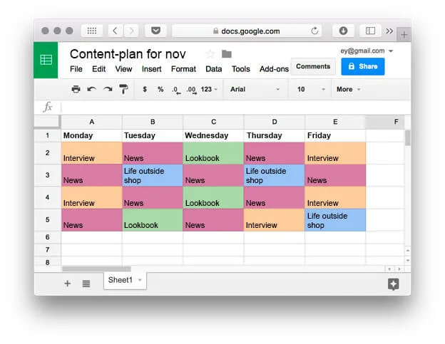Una simple tabla en Google Docs está bien. Por ejemplo una tabla así: