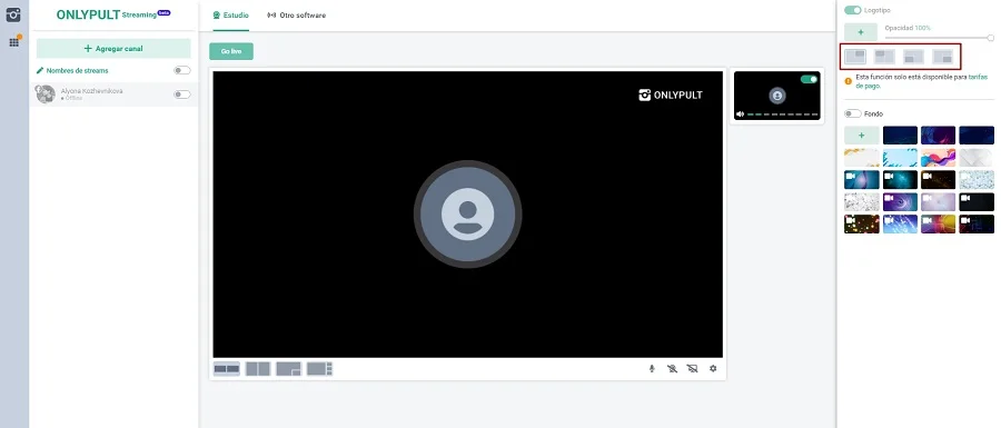- Usted puede realizar streams en Onlypult incluso si utiliza la versión gratuita.
