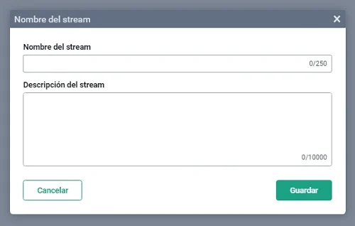Para ello, seleccione la opción “Nombres de streams” en el menú de la izquierda. Escriba un encabezado y una descripción en la ventana que se ha abierto.