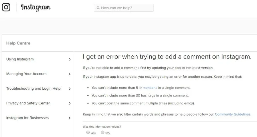 La notificación sobre un error puede surgir cuando en un comentario Usted hace más de 5 referencias a las cuentas. Para evitar la limitación y no ser bloqueado, divida la información en varios comentarios o publicaciones.