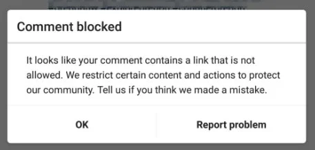 Los comentarios se bloquean si se utiliza el mismo texto y emoticonos para un gran número de publicaciones. En este caso se observa tanto la sospecha de spam, como los problemas de limitación.