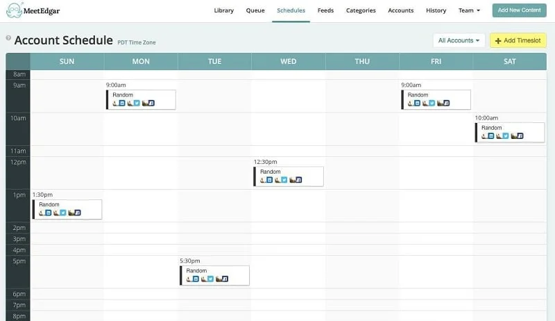 Meet Edgar es una herramienta automatizada para optimizar el contenido de las redes sociales. El argumento de venta más importante es que libera mucho tiempo para los administradores, lo que les permite concentrarse en otros asuntos. Además, una biblioteca categorizada ayuda a ver las publicaciones programadas en forma de calendario.