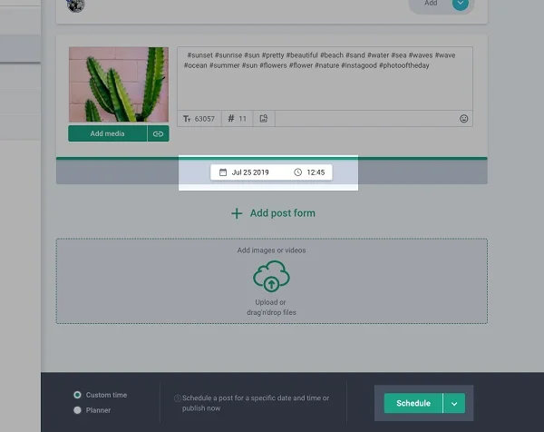 La programación de redes sociales es el proceso de cargar sus publicaciones antes de tiempo en una plataforma especial para que se publiquen automáticamente a una hora especificada. Normalmente, el software de programación es compatible con las principales redes sociales, como Facebook, Instagram, Twitter, LinkedIn, etc.