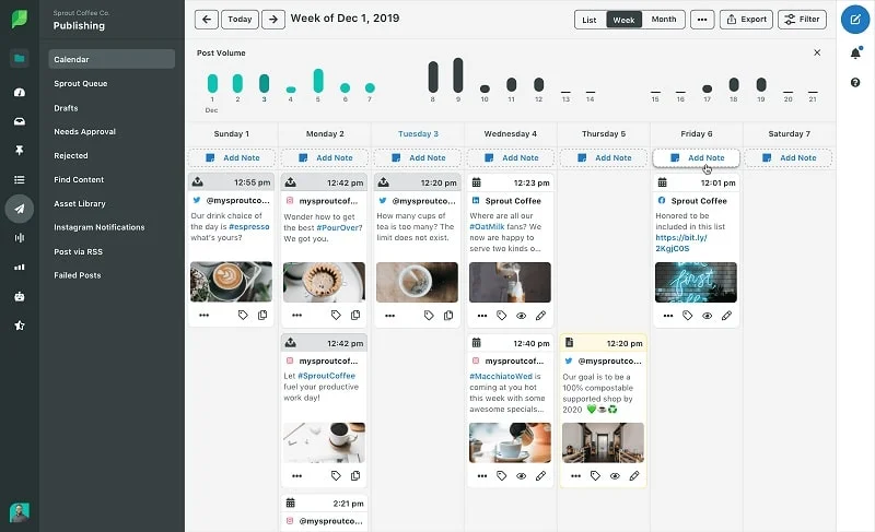 Sprout Social es un software de gestión y optimización de redes sociales. Se anuncia como un único centro de publicación, análisis y engagement, que es un buen sustituto del trabajo manual. En cuanto a sus capacidades de programación, se puede subir archivos arrastrándolos y editar borradores.
