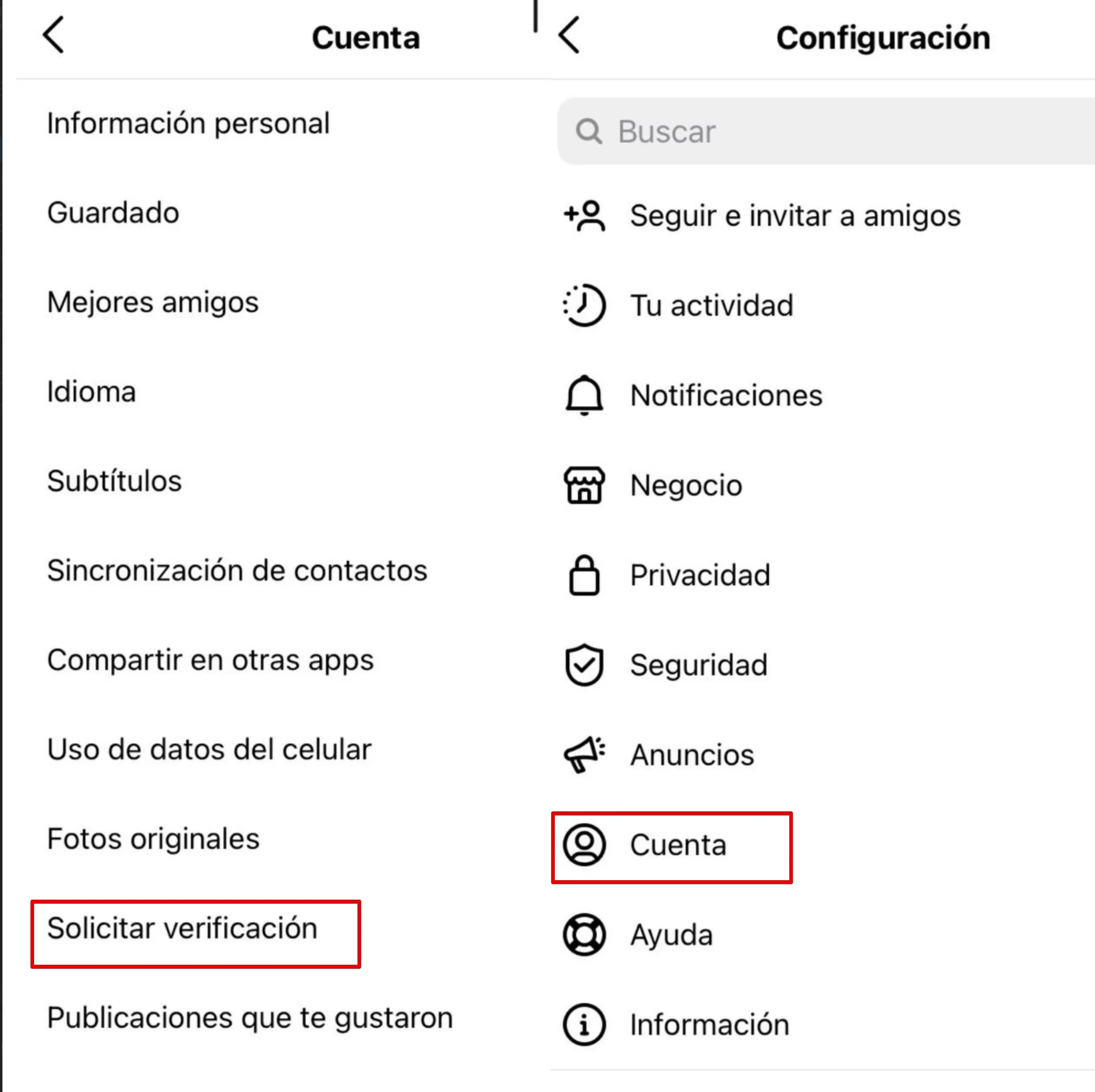 - Abra “Configuración”, luego “Cuenta” y seleccione “Solicitar verificación”.