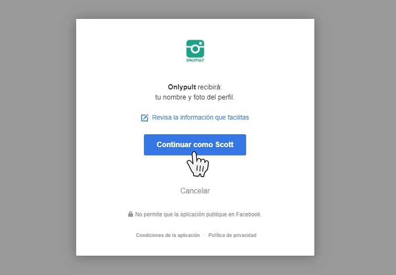 Aparecerá una ventana que le ofrecerá otorgar los derechos a la aplicación para acceder al nombre del perfil y la imagen. Haz clic en “Continuar”.