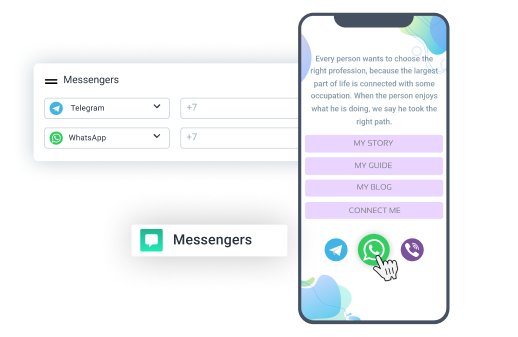 Interactúe con su audiencia sin esfuerzo. Agregue enlaces inteligentes a varios messengers y responda las preguntas de los usuarios de una manera familiar a la vez.