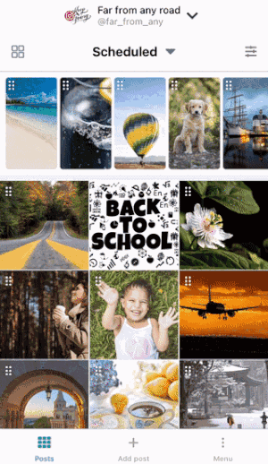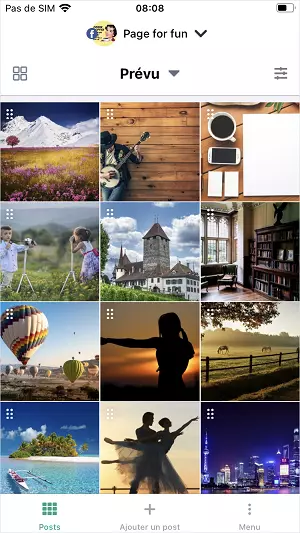Définissez la vue Tuile dans la liste des posts prévus et faites glisser les tuiles des posts pour modifier l’ordre de publication :