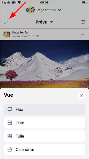 Vous pouvez modifier la vue dans n’importe quelle liste de publications (Prévus, Publiés, Brouillons).