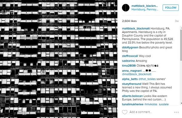 Encore un représentant de cette profession noble, qui combine son travail avec l’activité à Instagram, est un américain Matt Black. Dans son compte il parle du problème de la pauvreté aux États-Unis. Sous le seuil de pauvreté habitent 50 millions des américains et les chiffres seules ne raconteront pas sur l’ampleur de la calamité. Pour cela Matt, armé d’une caméra, voyage en pays et montre les quartiers urbains et les gens qui connaissent, qu’est-ce que c’est la pauvreté. À propos, pour une série des photos à Instagram Matt a reçu un statut prestigieux d’un membre de la photo agence Magnum.