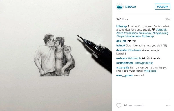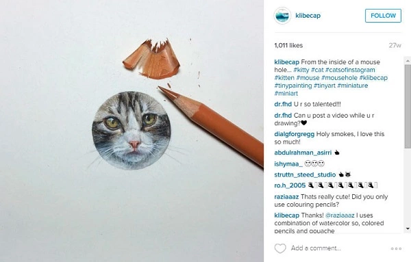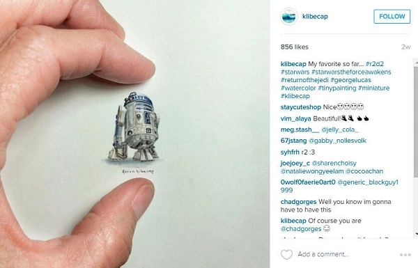 Une artiste américaine Karen Libecap a gagné la popularité à Instagram grâce à son talent “miniature”. D’être plus précis – à son talent de dessiner les images miniatures. Ses dessins sont pensés aux détails les plus petits. Et son Instagram – est encore un canal des ventes.