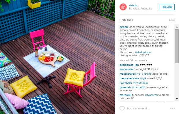 Bien-sûr, l’équipe des professionnels de Airbnb maintient leur compte de marque avec le schedule instagram posts (comme on le fait dans toutes les entreprises reconnues sans exception). L’instagram de Airbnb – est, premièrement, le style. Le style est fait non seulement par les photos esthétiques, mais aussi par les légendes au-dessous.