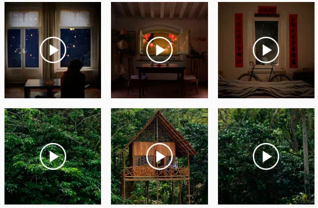 Les collages des photos (plusieurs photos dans la bande du compte qui forment une image unique) – est très populaire. Néanmoins, Airbnb s’est encore avancé – sur la page d’accueil du compte on peut rencontrer même les collages-vidéos. Il est facile à les faire, en ayant chargé le vidéo à l’aide de notre service.