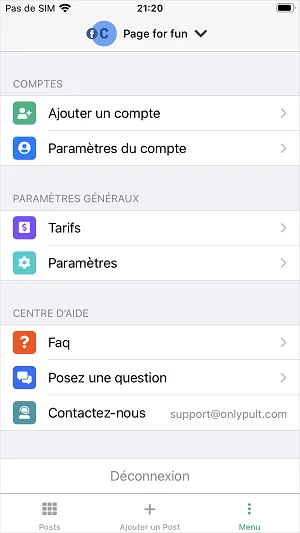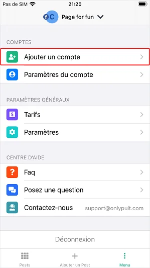 Paramètres du compte Onlypult
