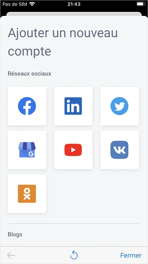 Nous avons complètement repensé la liste des comptes de réseaux sociaux dans cette nouvelle version de l’application mobile. Vous pouvez maintenant l’ouvrir sur un nouvel écran en appuyant sur le nom du compte actuellement sélectionné.