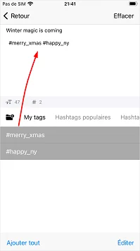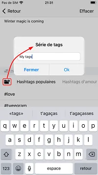 Créez vos propres sets de hashtags préférés et ajoutez-les à vos publications si nécessaire.
