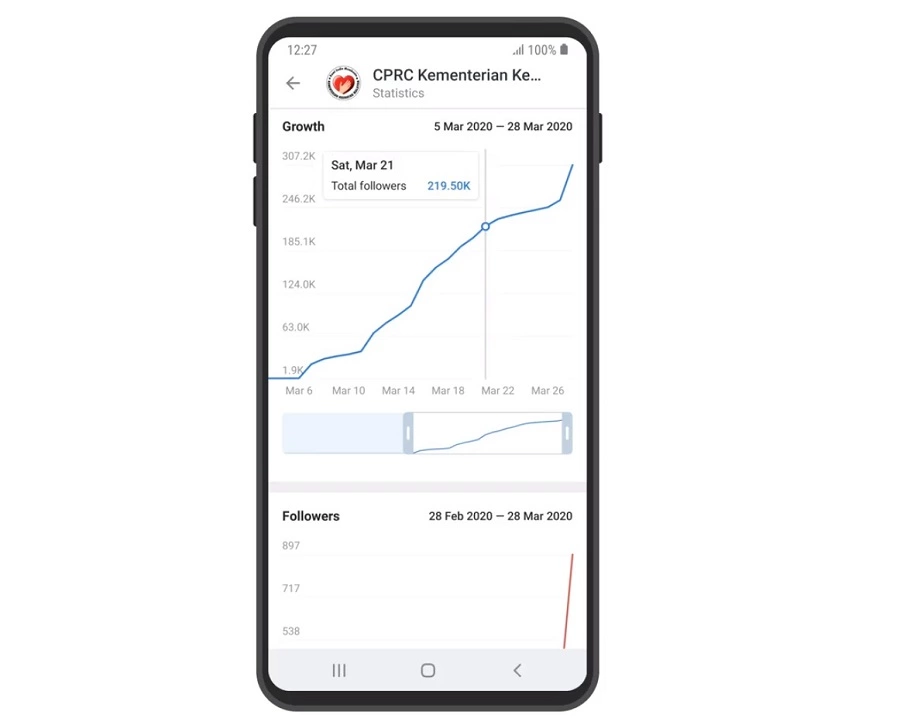 La fonctionnalité est disponible à la fois pour iOS et Android. Pour afficher les statistiques dans l’application Android, cliquez sur le profil de votre chaîne, recherchez le menu Options ( … ) et choisissez “Statistiques”.