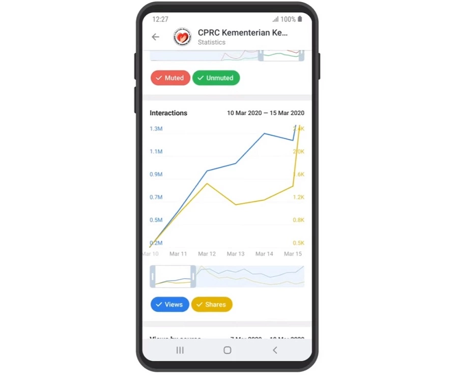 Il existe un graphique séparé pour les re-posts et les vues des publications récentes. La période de suivi maximale est d’une semaine. Si vous cliquez sur un certain post, vous verrez un rapport statistique détaillé.