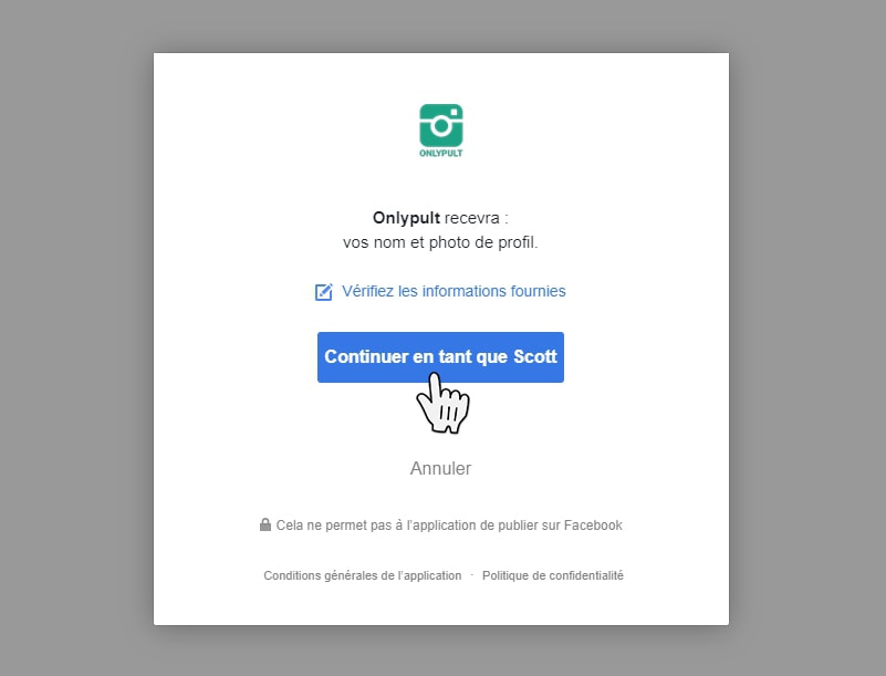 Si vous avez déjà octroyé tous les droits à l’application, vous serez automatiquement redirigé vers la dernière étape.