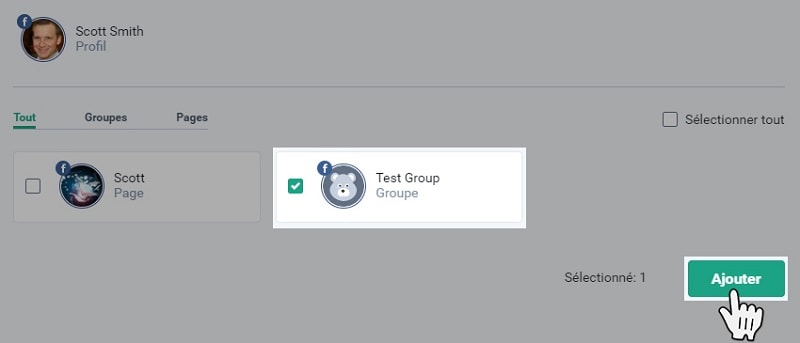 - Après avoir accordé tous les droits relatifs, le service ouvre la liste de tous les groupes auxquels vous avez accès. Sélectionnez tous les groupes que vous souhaitez ajouter et appuyez sur “Ajouter”.