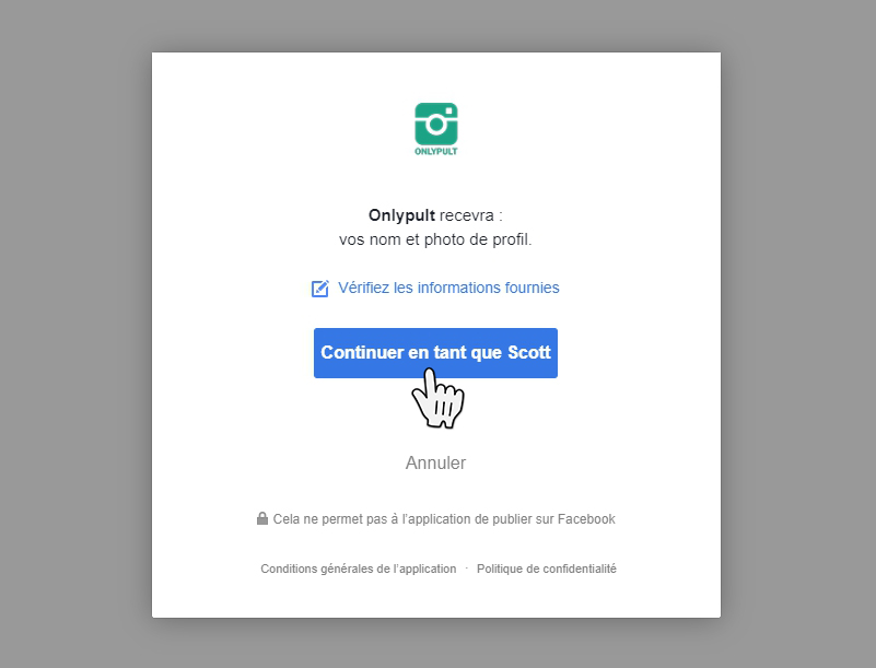Si vous avez déjà octroyé tous les droits à l’application, vous serez automatiquement redirigé vers l’étape 4