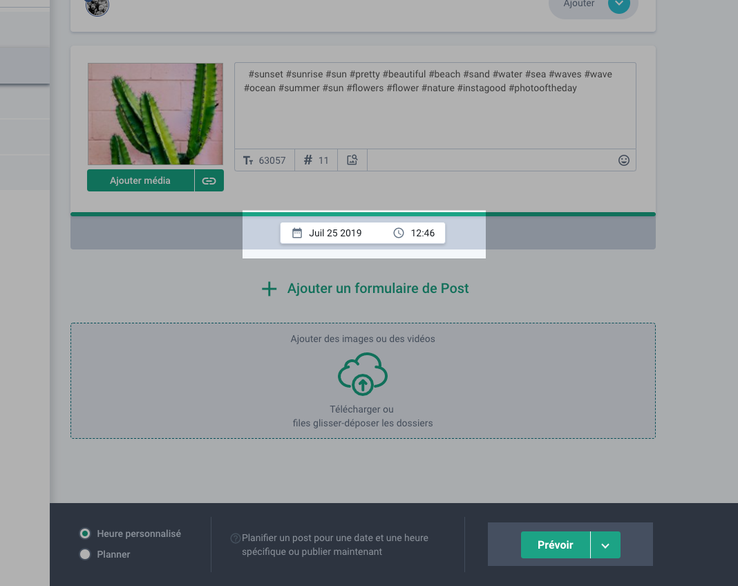 Si vous souhaitez planifier un Post pour une heure spécifique, sélectionnez une date et un créneau horaire, puis appuyez sur Prévoir.