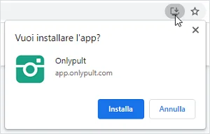 Un’icona sul desktop, una finestra separata — e non è nemmeno necessario aprire il browser! Inoltre, l’applicazione funziona più velocemente e senza intoppi! Se vuoi provare a lavorare con Onlypult in questo modo, segui alcuni semplici passaggi. Apri il sito web onlypult.com su Chrome, fai clic sull’icona Installa alla fine della barra dell’indirizzo, quindi fai clic sul pulsante Installa: