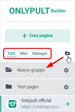 Ora puoi raggruppare e filtrare le pagine in Builder nello stesso modo in cui lo fai lavorando con i profili su Pubblicazione o con i progetti in Monitoring.