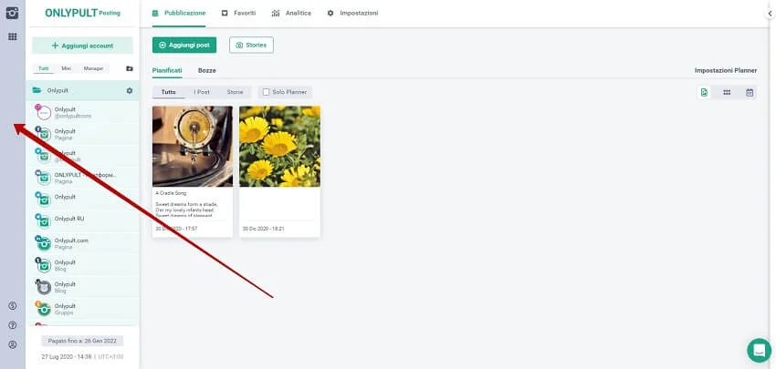 - Riordina i post programmati, sposta i post tenendo premuto il tasto sinistro del mouse.