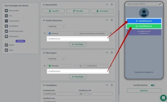 Abbiamo fornito la possibilità di modificare i nomi dei pulsanti dei social network e messenger. Se non si specifica un altro nome, il nome del social network rimarrà tale il pulsante selezionato.