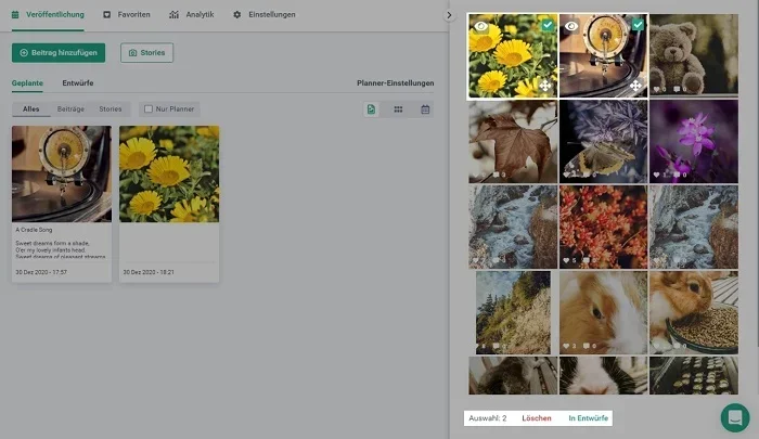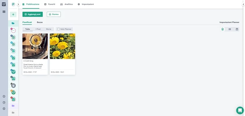 - Azioni di gruppo con post pianificati. Seleziona più post contemporaneamente per eliminarli o spostarli nelle Bozze.