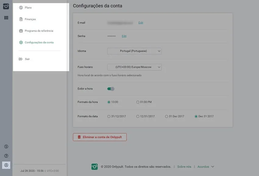 Ora puoi accedere al menu Impostazioni Account e alle sezioni utili per lavorare con la nostra piattaforma premendo il pulsante  sul pannello di sinistra.