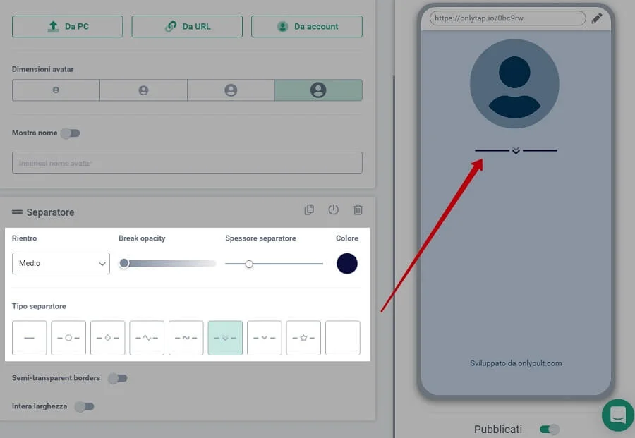 - nuovi tipi di separatore, regolazione dell’opacità e della spessore del separatore;