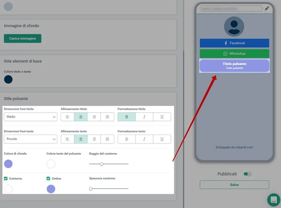 - allineamento del titolo e del testo, formattazione, spessore e raggio del contorno;