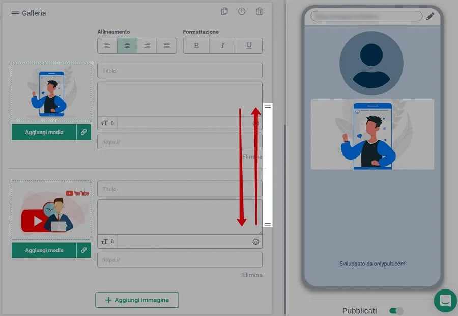 - possibilità di modificare l’ordine delle immagini nella Galleria;