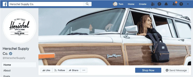 Infine, ecco un esempio di come posizionare l’immagine per farla funzionare su tutti i dispositivi. La copertina è allineata a destra, che complementa l’immagine del profilo a sinistra e pareggia tutto. L’azienda è specializzata in accessori di ispirazione vintage, e l’immagine combacia con l’estetica del brand.