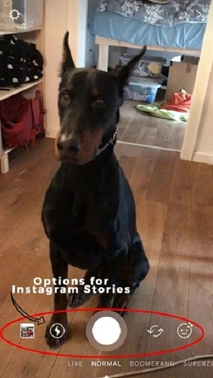- Se lo desideri, scegli un’altra modalità della fotocamera puoi scegliere dalla barra posta verticalmente a sinistra Boomerang, Superzoom, Rewind e Hands-Free.