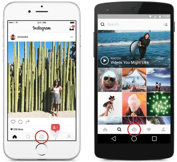 Entrambe le app Instagram per iOS e Android hanno la funzionalità per filmare all’interno dell’app.