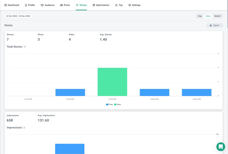 Inoltre, è possibile visualizzare informazioni dettagliate su una pubblicazione specifica, su post e storie.
