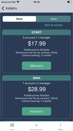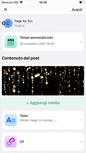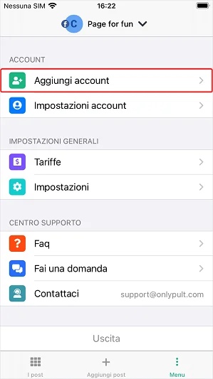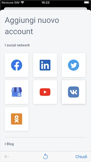 Puoi aggiungere ed eliminare i tuoi account di social media direttamente nell’app mobile.
