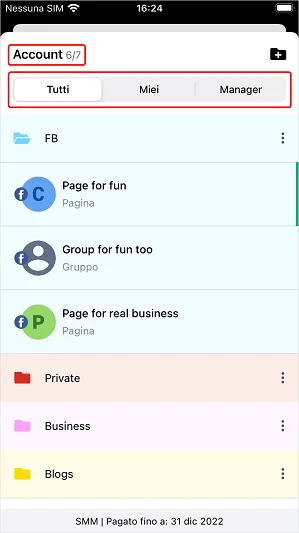 Inoltre, nell’elenco, puoi vedere quanti account hai aggiunto tra quelli disponibili secondo la tariffa.