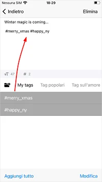 Crea i tuoi set di hashtag preferiti e aggiungili a qualsiasi post quando necessario.