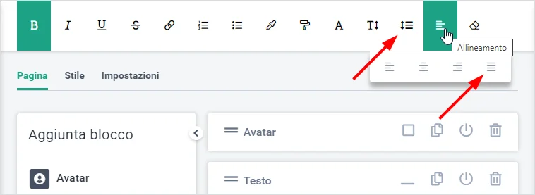 - Nell’editor di testo sono disponibili due nuove funzionalità: Giustificazione e Interlinea: