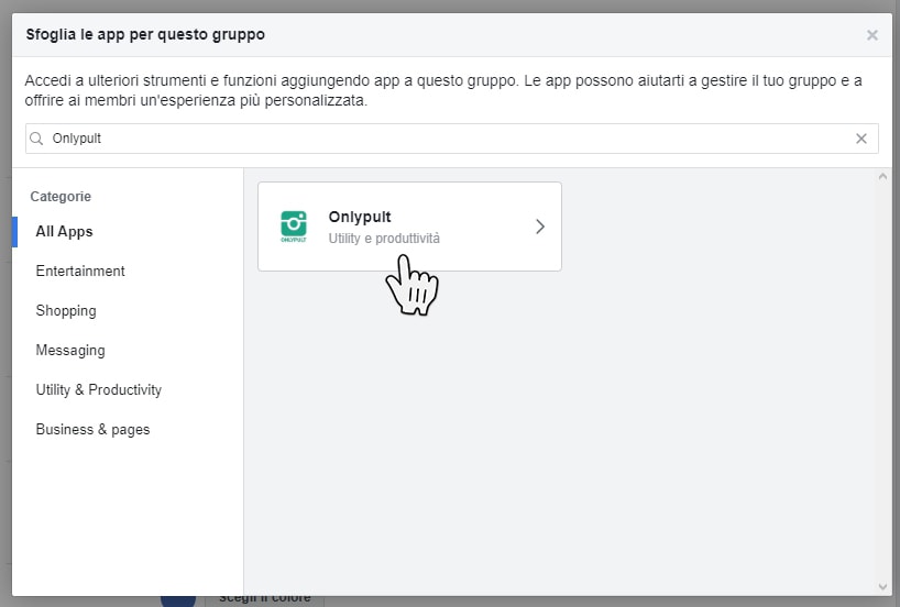 - Scrivi “Onlypult” nella barra di ricerca che apparirà, seleziona l’app e premi “Aggiungi” nella finestra che appare di seguito.