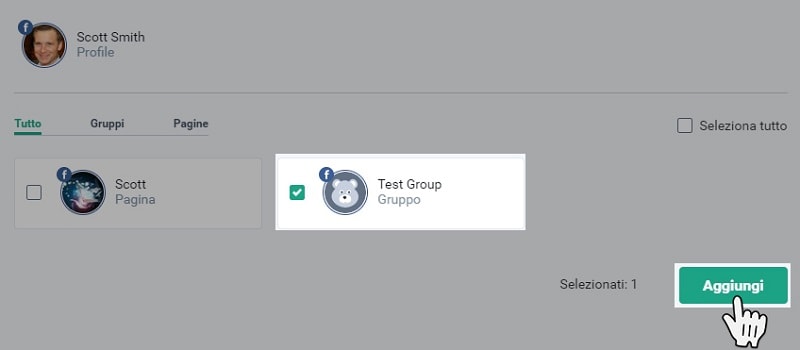 4.Dopo aver concesso tutti i relativi permessi, il Servizio aprirà una lista di tutti i gruppi a cui si ha accesso. Selezionare tutti i gruppi che si desidera aggiungere e premere “Aggiungi”.