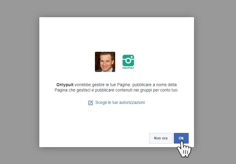 - Apparirà una finestra che offrirà di consentire all’app di gestire le proprie pagine, pubblicare in vece della propria pagina, e pubblicare su gruppi in propria vece.