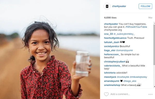 P.S. A conta Instagram da «Caridade:água» é o exemplo perfeito do posicionamento coreeto em redes sociais. O objetivo principal deste projeto é atrair fundos de caridade, e a equipe deste projeto lida muito bem com esta tarefa. Escusado será dizer que, esta equipe de profissionais está familiarizada com termos como Análise Instagram, gestão de publicações Instagram e planeamento de publicações Instagram.