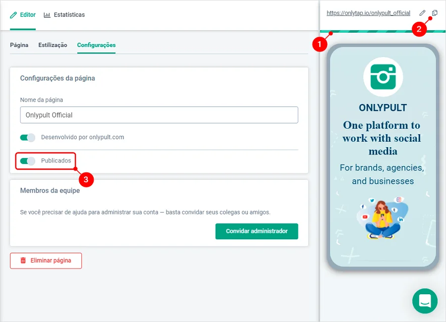 - Você pode copiar um URL de página clicando no novo ícone (2).