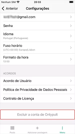 Se necessário, você pode excluir sua conta no aplicativo móvel — não apenas criá-la: